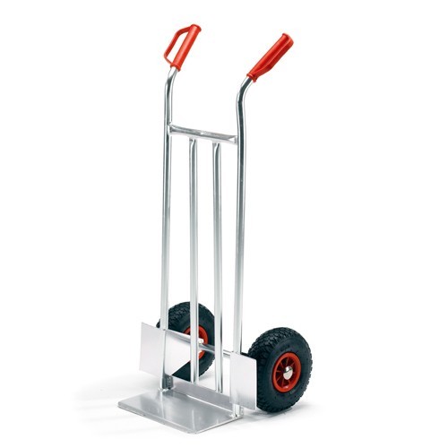 Fest verschweißte Aluminiumkonstruktion. Vollgummi- bzw. Lufträder mit Kunststofffelge und Rollenlager.