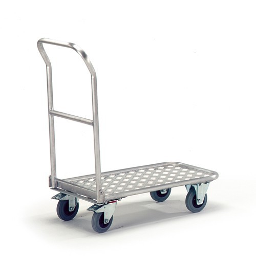Die Magazinwagen mit Klapp-Schiebebügel haben eine Ladefläche aus Aluminium-Riffelblech