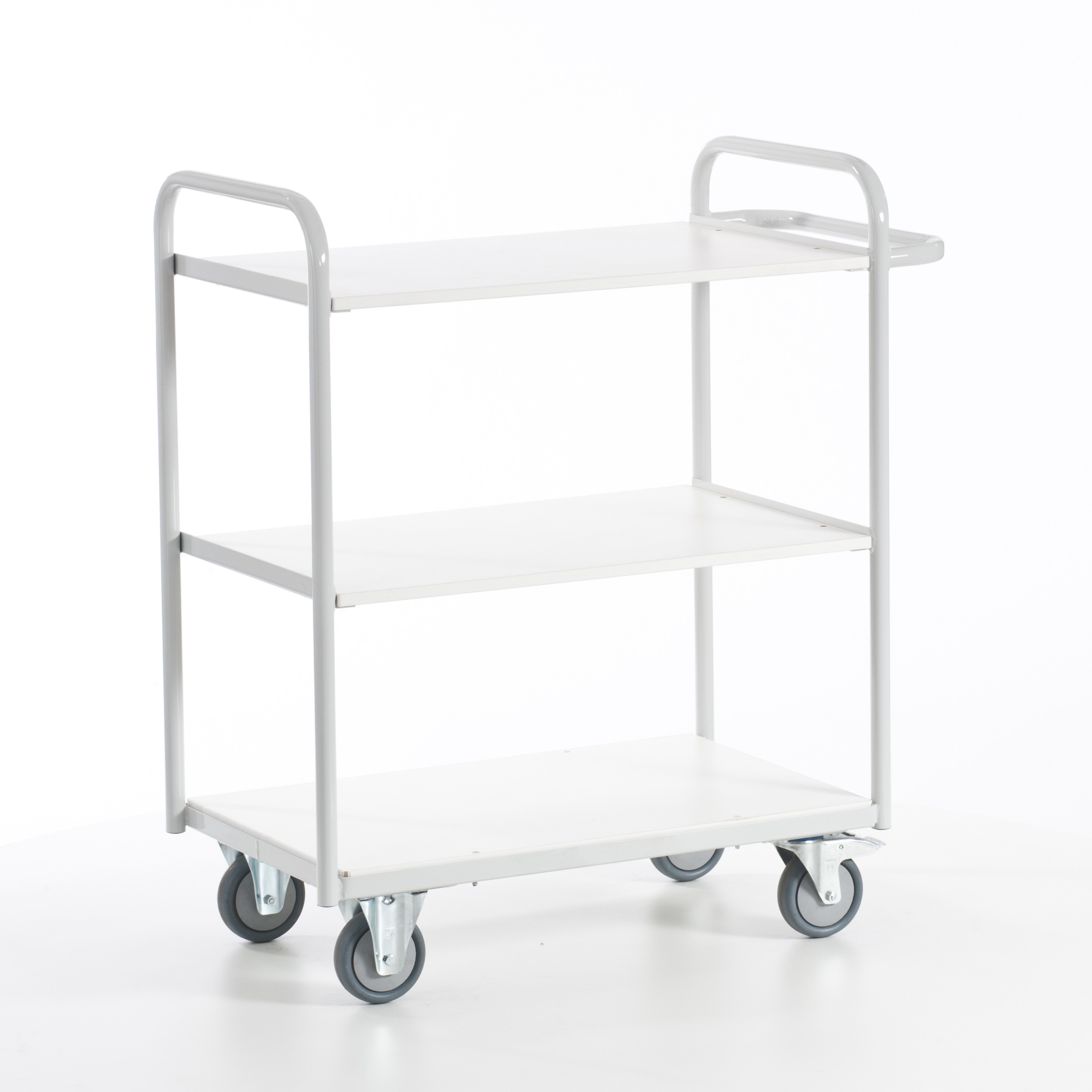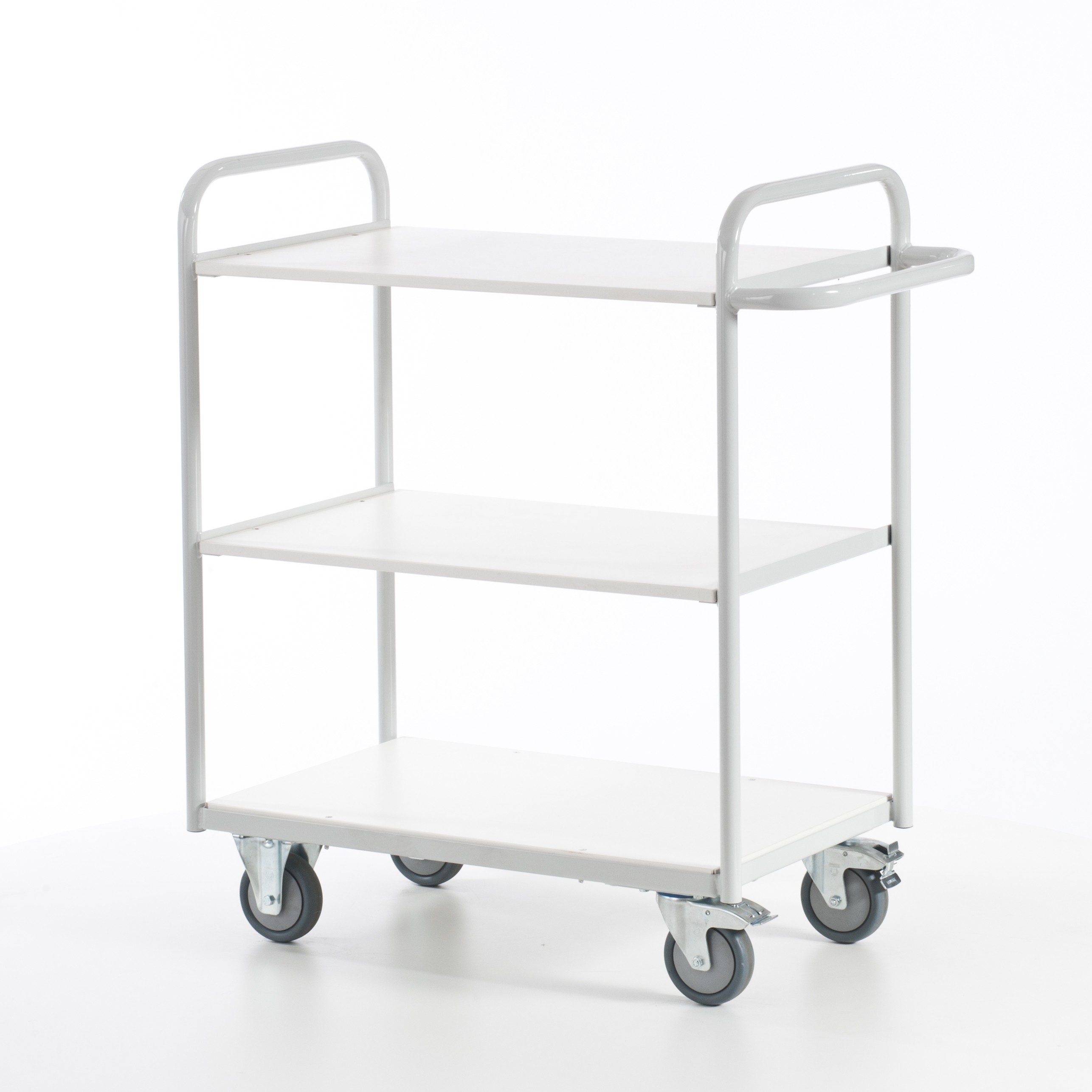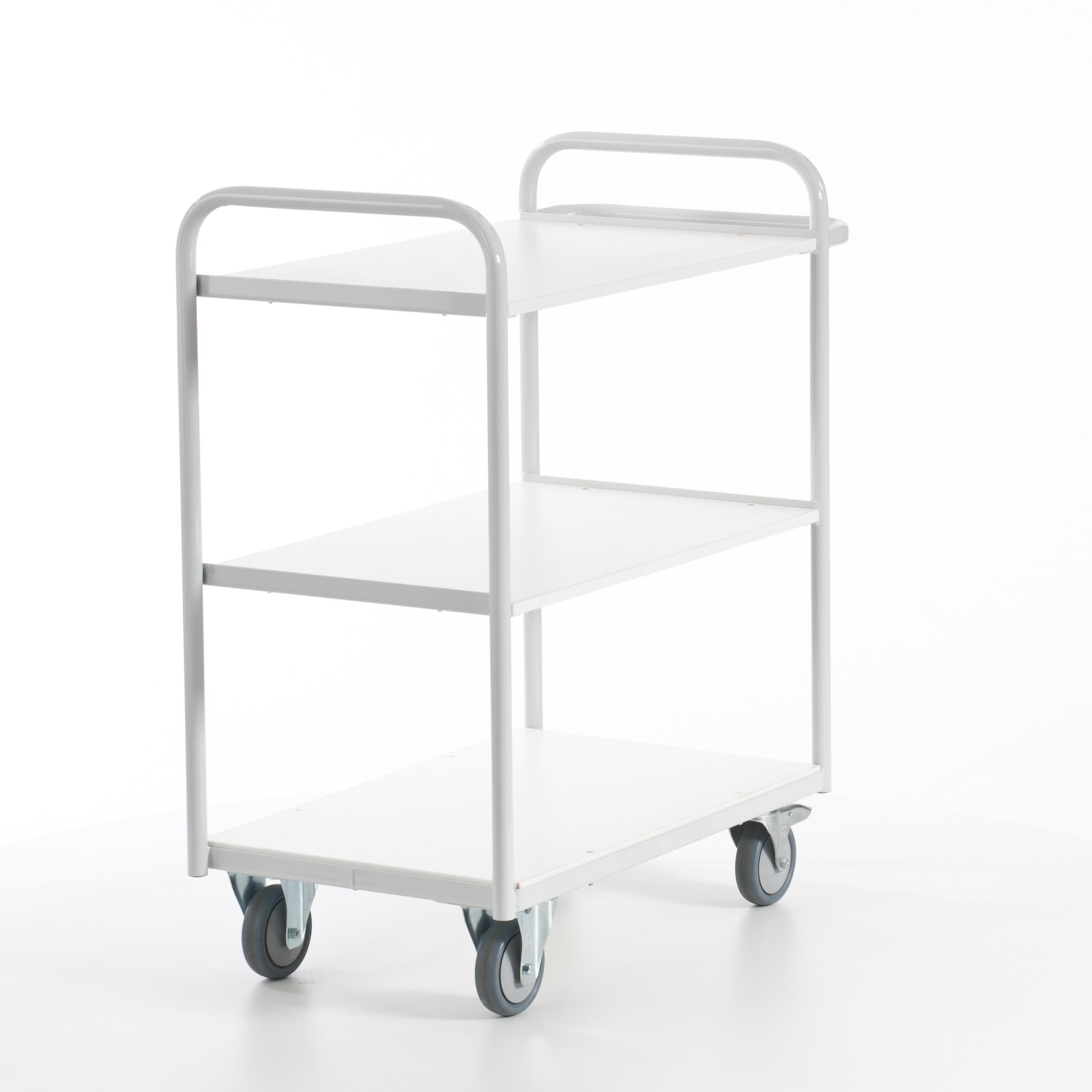 Diese handlichen Etagenwagen sind besonders für den Büro- und Verwaltungsbereich geeignet. Akten und Schriftgut lassen sich griffbereit ablegen, aufbewahren und transportieren. Die Etagenböden sind fest eingenietet und nicht herausnehmbar. Räder mit spurloser Bereifung.