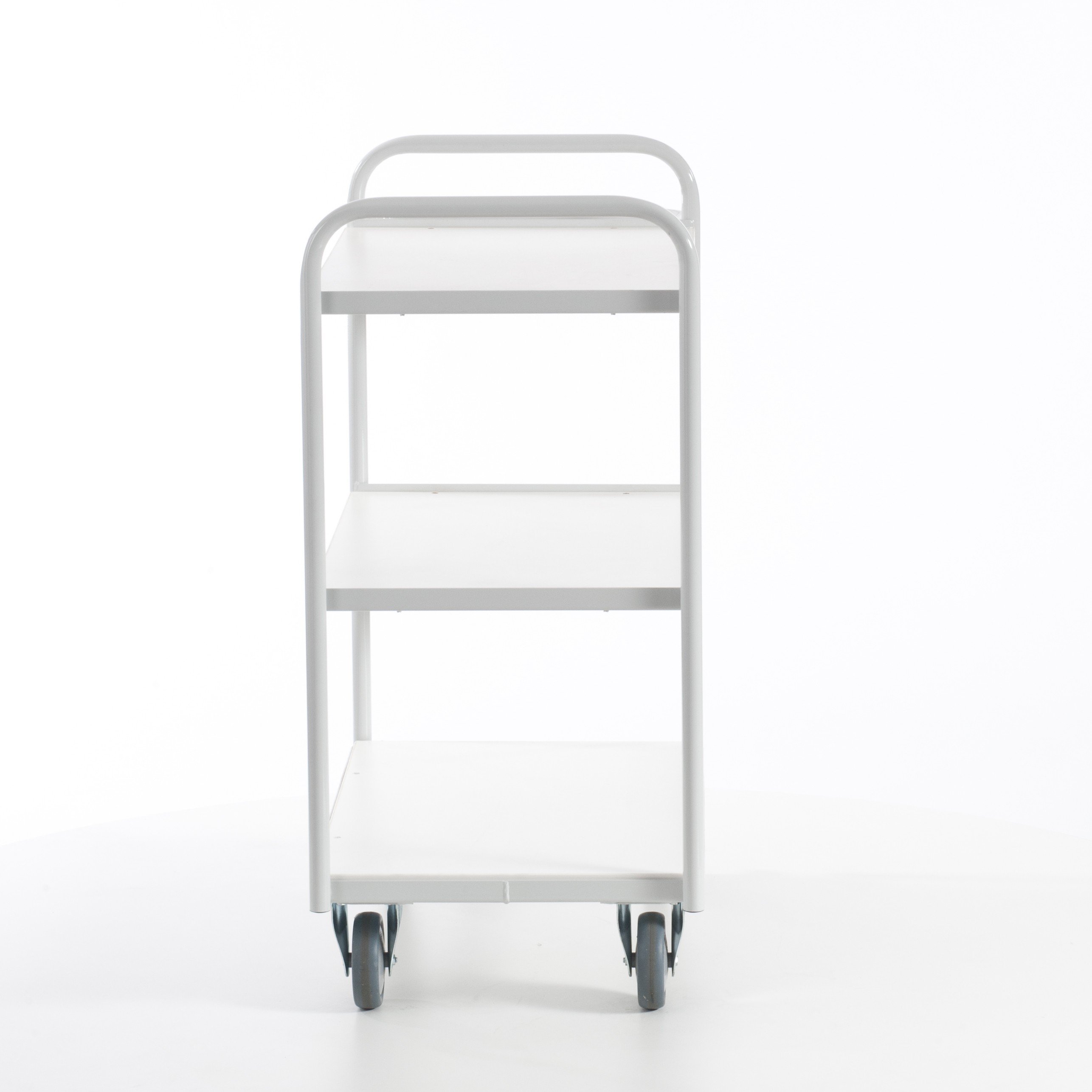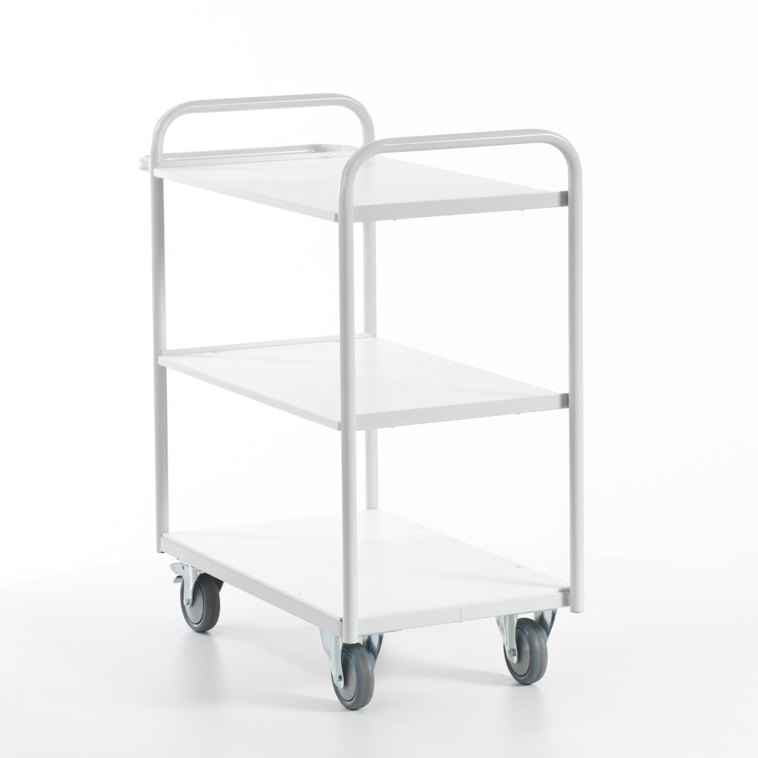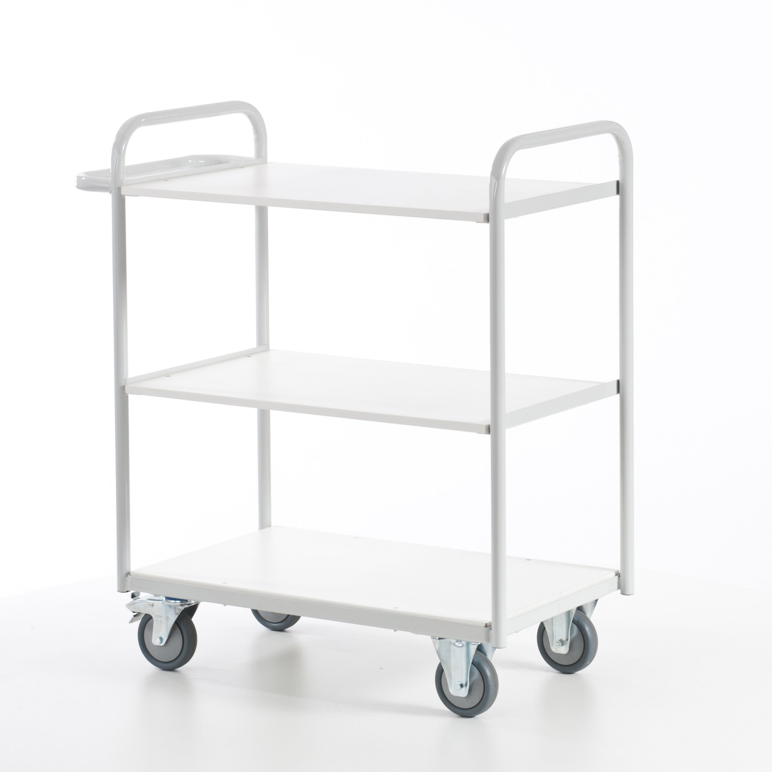 Diese handlichen Etagenwagen sind besonders für den Büro- und Verwaltungsbereich geeignet. Akten und Schriftgut lassen sich griffbereit ablegen, aufbewahren und transportieren. Die Etagenböden sind fest eingenietet und nicht herausnehmbar. Räder mit spurloser Bereifung.
