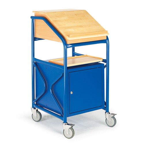 Im Betrieb, im Lager, in der Werkstatt und im Versand bieten die mobilen sehr robusten Stehpulte einen ergonomisch akzeptablen, flexiblen Schreibplatz. Stehpulte mit Stahlschrank , Stahlschrank mit 1 festen und 2 höhenverstellbaren Fachböden.