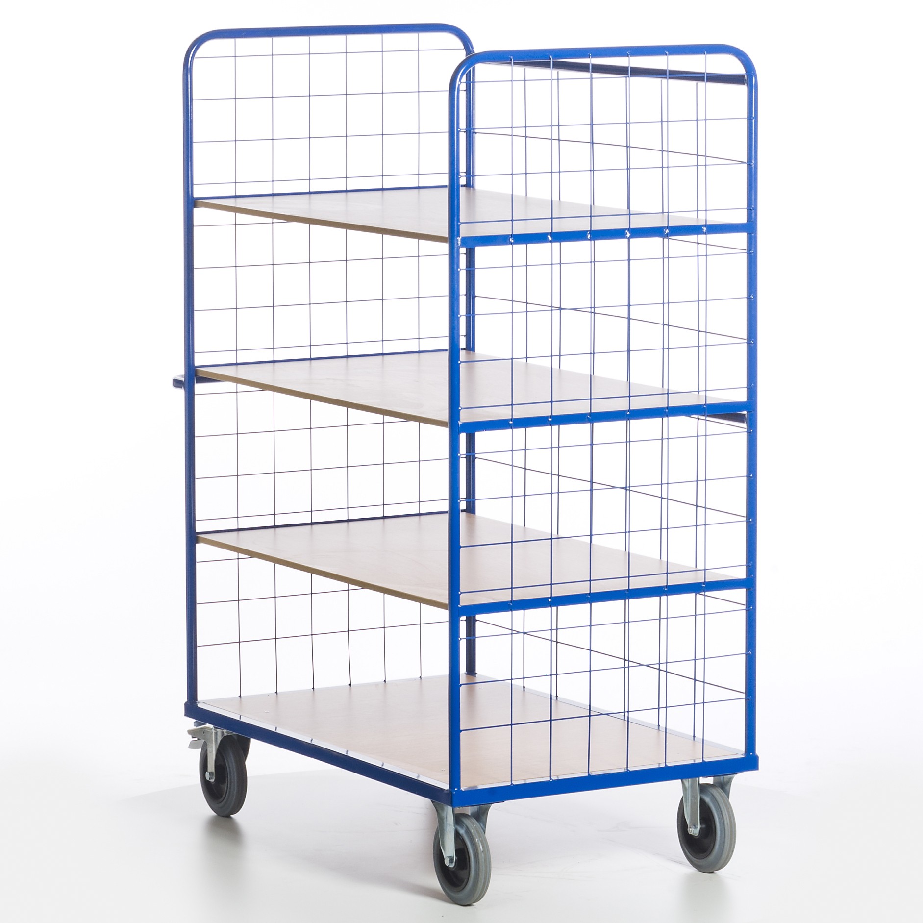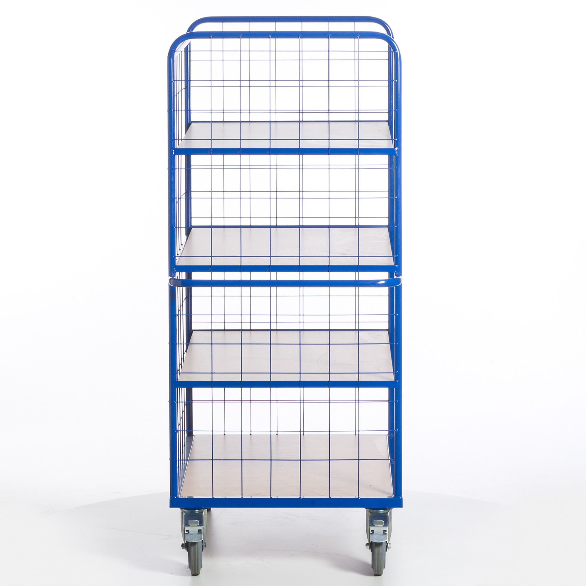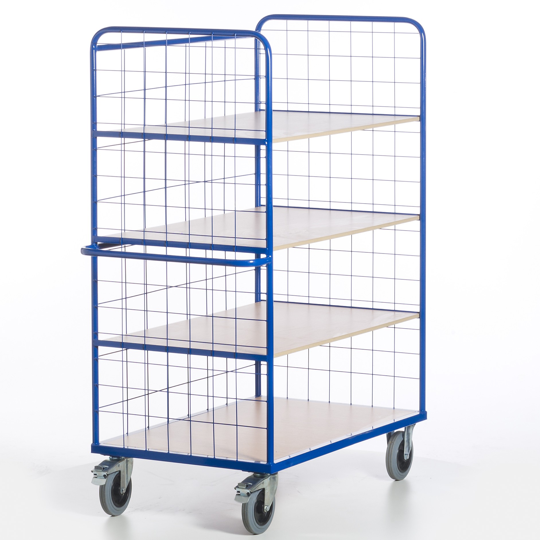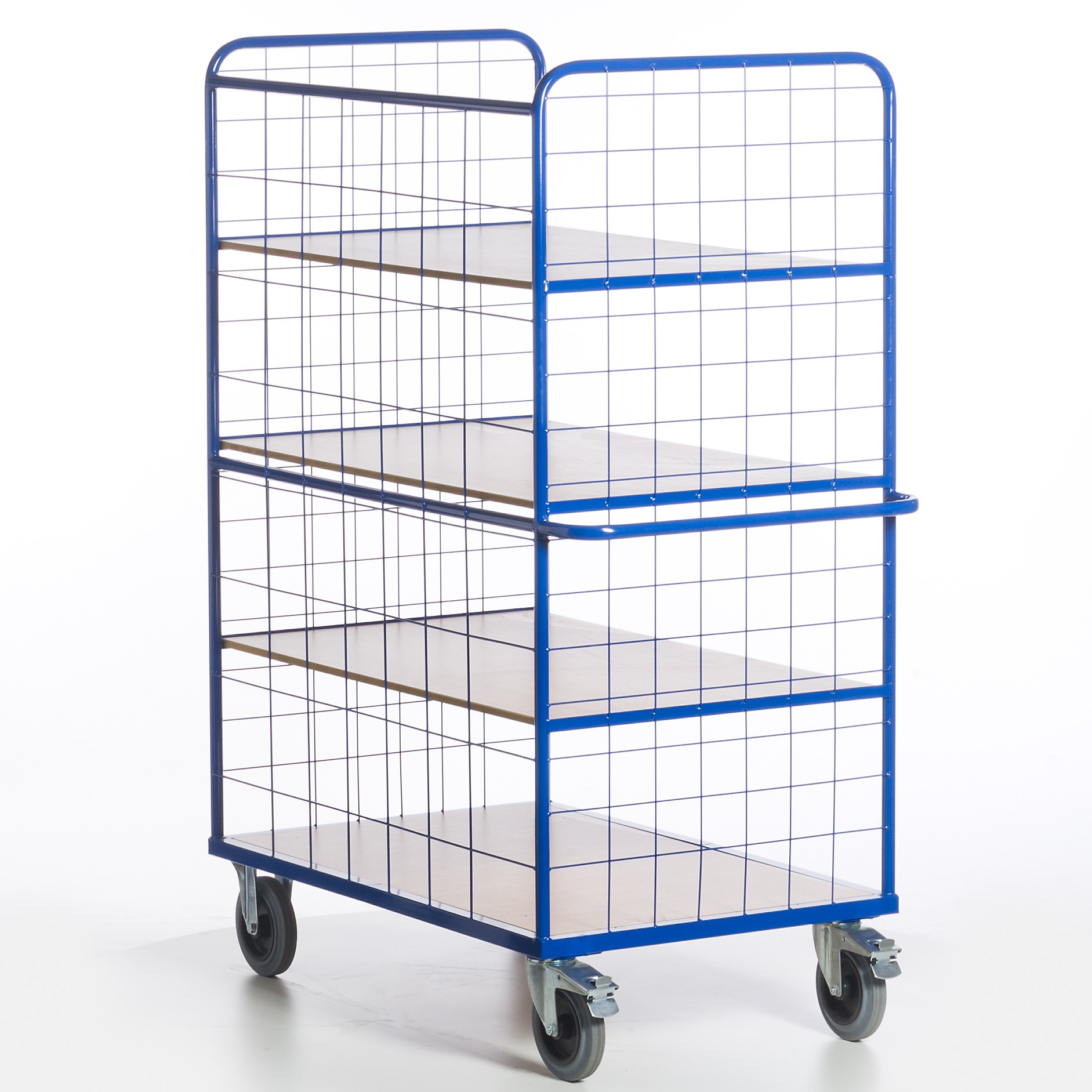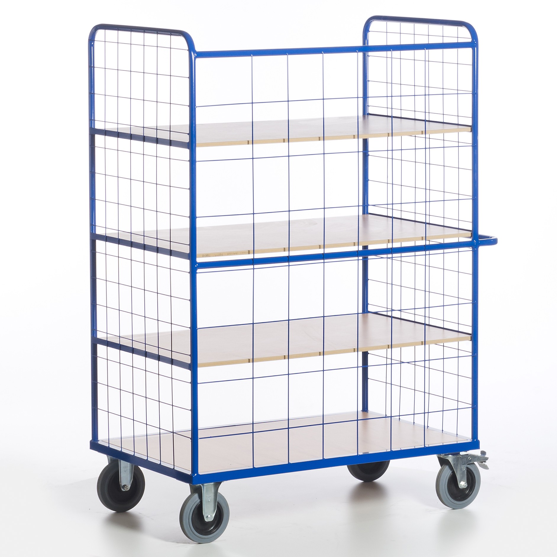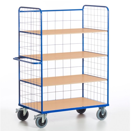 Die drei Etagenböden sind herausnehmbar. Bei den Etagenwagen ohne Gitter sind stirnseitig zwischen den einzelnen Etagen zusätzliche Winkelauflagen eingeschweißt, um dort zusätzliche oder die bereits vorhandenen Etagenböden einlegen zu können. Die Etagenwagen mit Gitter haben stirnseitig eine Teilung von 100/100/5 mm und längsseitig eine Teilung von 200/150/5 mm. Die Gesamthöhe der Wagen beträgt ca. 1880 mm. Max. Belastung pro losem Boden: 80 kg