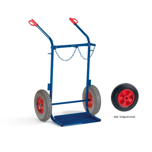 Produktinfo Stahlflaschenkarre:Fest verschweißte Stahlkonstruktion. Unentbehrlich für das Schweißen im mobilen Einsatz. Für 2 Stahlflaschen.