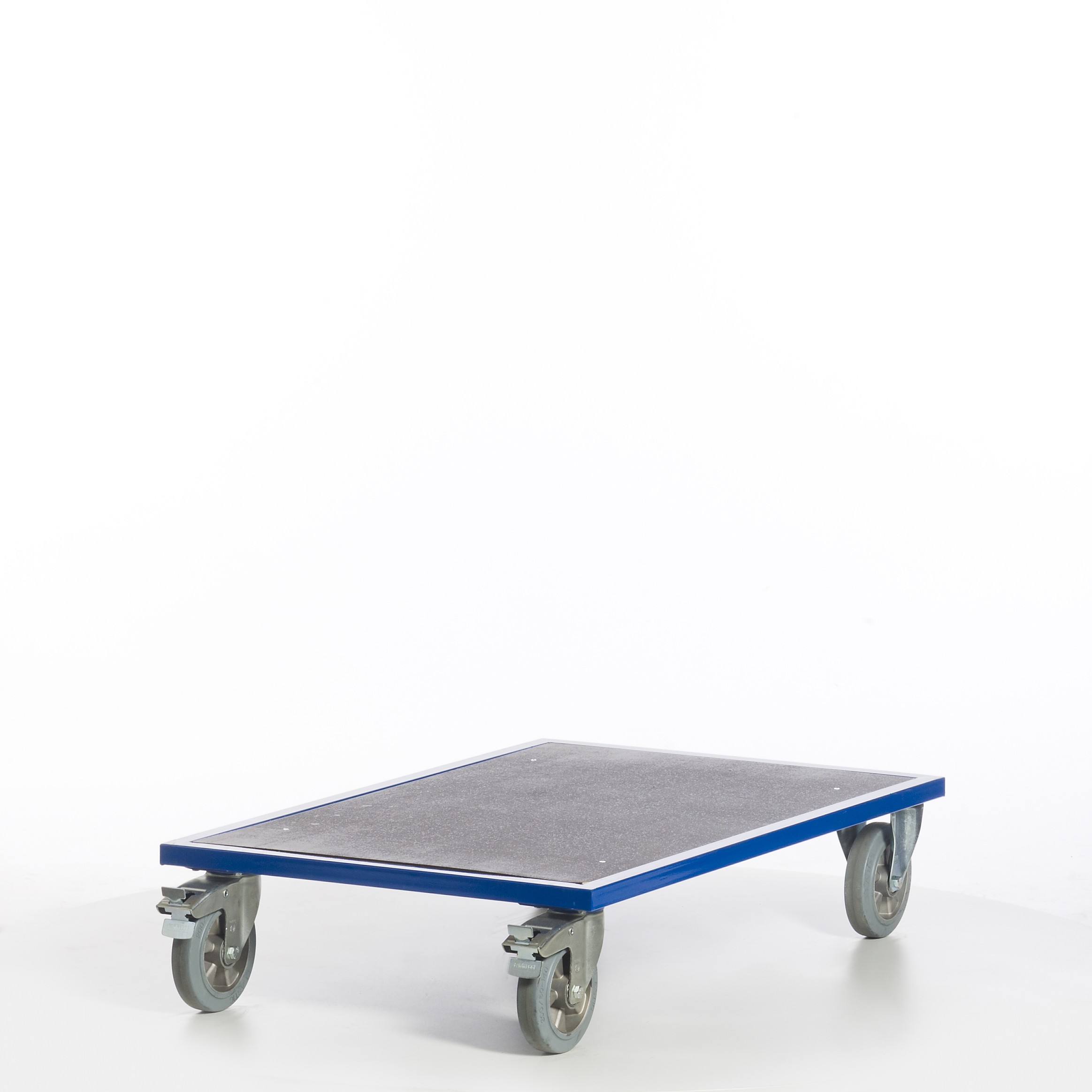 Lenkrollen mit blaugraue Schwerlast-Vollgummi-Elastik und Kugellager, Gehäuse verzinkt, Feststeller an den Lenkrollen gemäß Europäischer Norm EN 1757-3