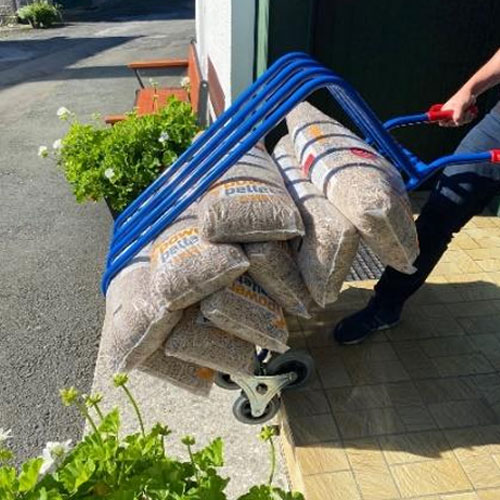 Die Kaminholztransportkarre ist für Holzscheite von 25 – 60 cm optimal geeignet. Durch die innovativen, fest angeschweißten U-Bügel an den Schiebegriffholmen, können die Holzscheite bis auf eine Höhe von max. 84 cm und einer Tiefe bis 37 cm gestapelt werden. Die Kaminholztransportkarre eignet sich auch perfekt für den Transport von Pellets-Säcken.