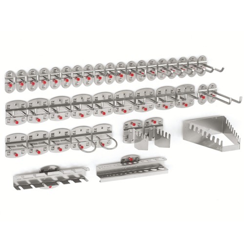 Die Werkzeughalter werden einfach in die Lochung eingehängt und mit kleiner Schraubendrehung fest arretiert. Sorgt für sicheren Halt.