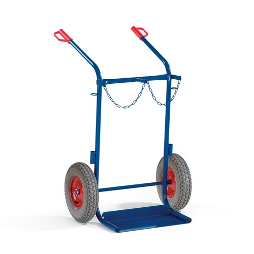 Produktinfo Stahlflaschenkarre:Fest verschweißte Stahlkonstruktion. Unentbehrlich für das Schweißen im mobilen Einsatz. Für 2 Stahlflaschen.