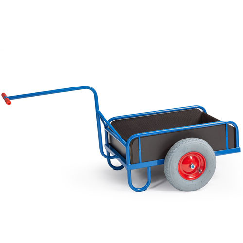 Produktinfo 1-Achs-Handkarre mit Bordwänden: Alle Handkarren werden fest verschweißt. Geländer bzw. Bordwandhöhe 220 mm.