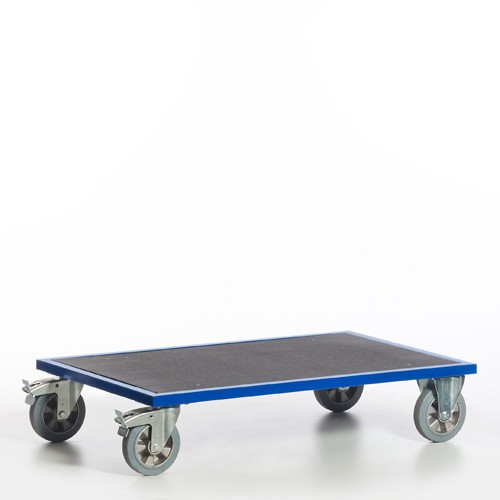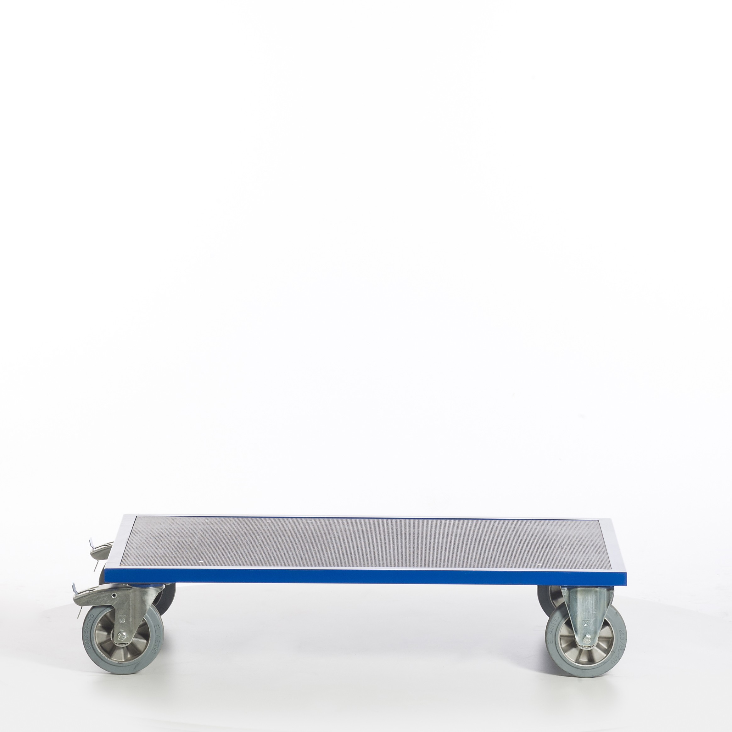 Lenkrollen mit blaugraue Schwerlast-Vollgummi-Elastik und Kugellager, Gehäuse verzinkt, Feststeller an den Lenkrollen gemäß Europäischer Norm EN 1757-3