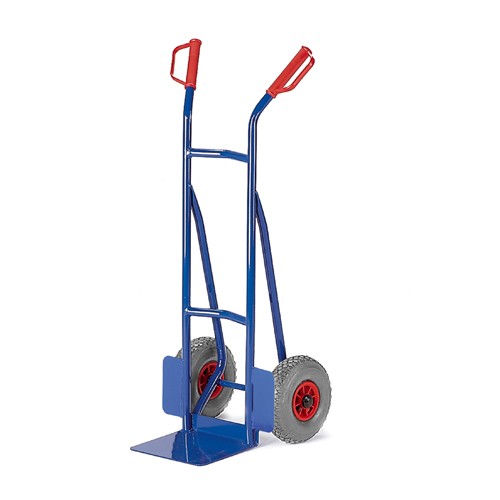 Fest verschweißte Stahlkonstruktion. Vollgummi- bzw. Lufträder mit Kunststofffelge und Rollenlager.